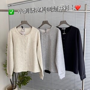 25秋季新款女士简约休闲刺绣宽松圆领单排扣长袖开衫外套0905q8