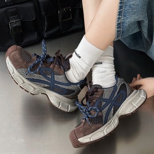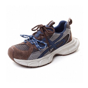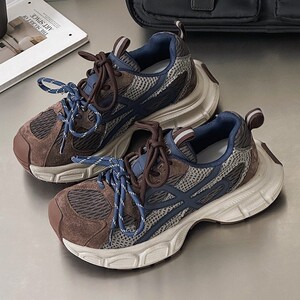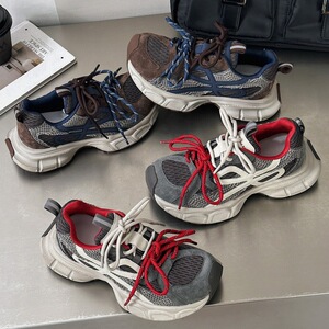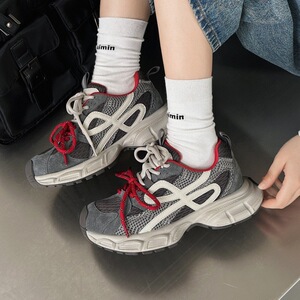 2025新款真皮网面透气防滑慢跑女轻便厚底休闲鞋时尚百搭潮老爹鞋