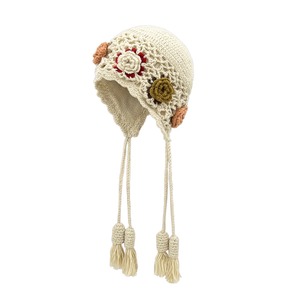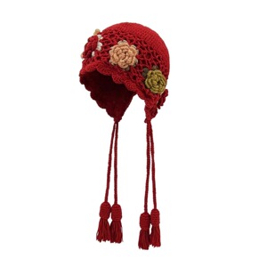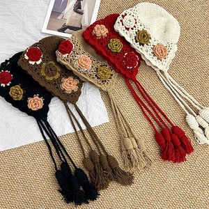 2025新款手工编织花朵双层辫子毛线帽子女秋冬保暖百搭针织护耳帽
