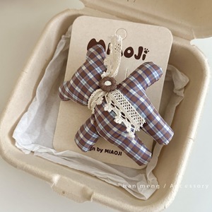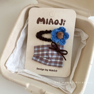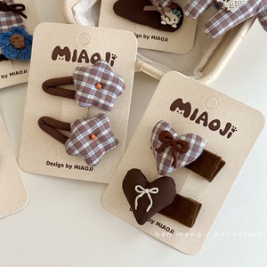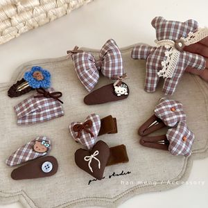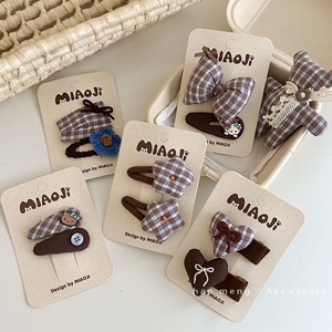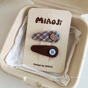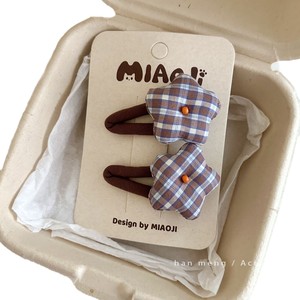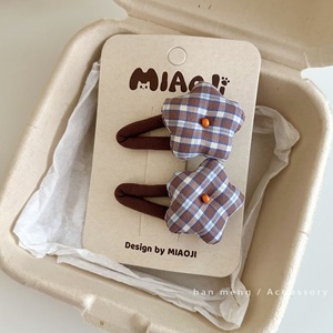 新款可爱布艺灰蓝格纹星星小熊蝴蝶结儿童发夹女童发卡边夹刘海夹