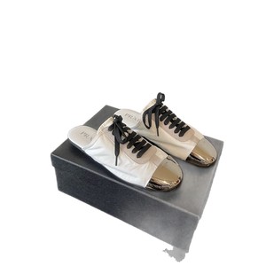 千元级别!三角标p家铁头德训鞋女系带包头半拖平底阿甘鞋帆布鞋