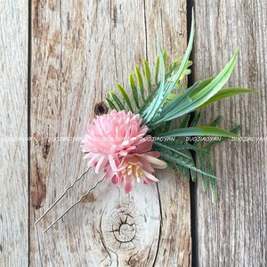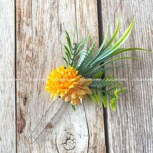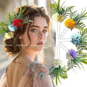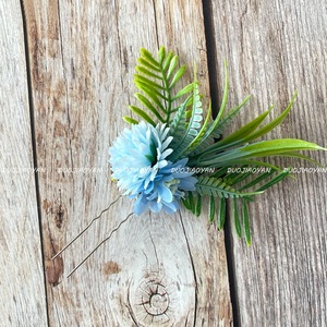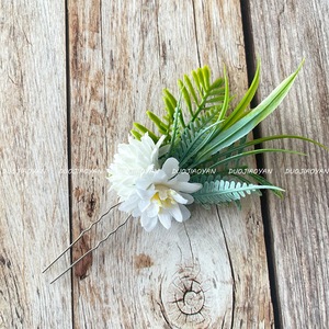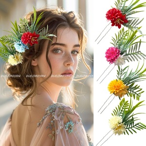 跨境新款小球菊发簪时尚仿真绢花发梳旅游度假沙滩花朵 U型夹发饰