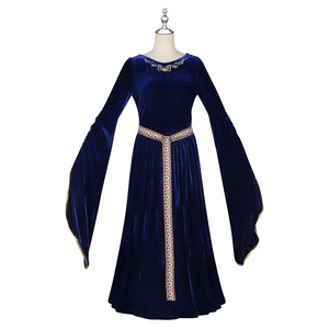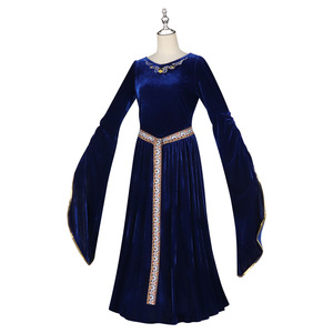 中世纪新款服饰成人女士cos 复古宫廷女王宝蓝连衣裙喇叭袖长裙