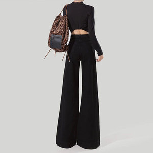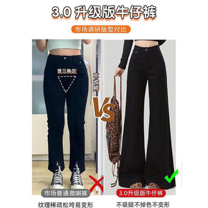 胖mm大码黑色微喇牛仔裤女秋季新款梨型身材低腰百搭显瘦喇叭裤子