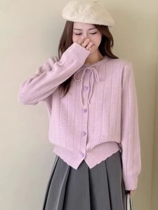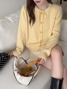 韩系系带爱心扣针织开衫2025春秋新款毛衣外套独特漂亮穿搭上衣