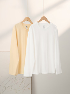 长袖纯棉T恤女内搭打底衫女秋冬情侣装打底衣正肩精梳棉上衣