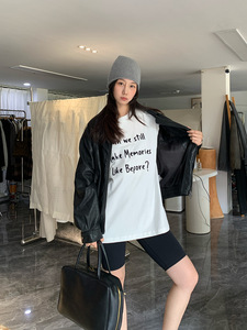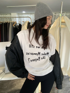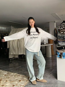 SROOM十三行简约百搭字母圆领宽松长袖T恤女打底衫纯棉牙刷绣上衣