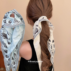 韩版布艺印花海螺长款发绳清新度假风甜美扎发发圈轻奢高级感头饰