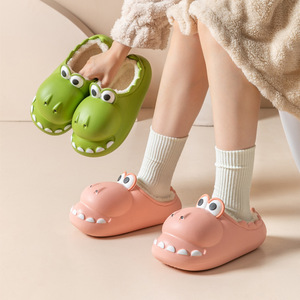 可爱拖鞋小恐龙加厚暖和冬季棉拖鞋室内防滑高级感宿舍学院风棉鞋