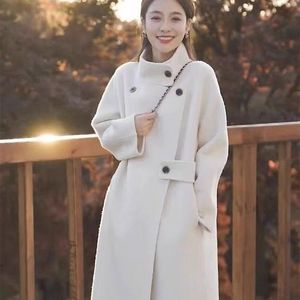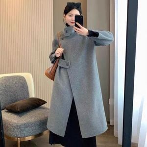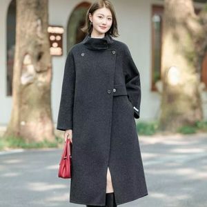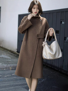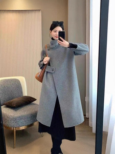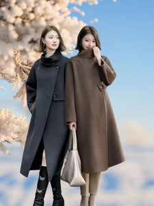秋冬复古气质时尚宽松立领双面毛呢大衣中长款外套女