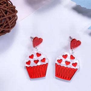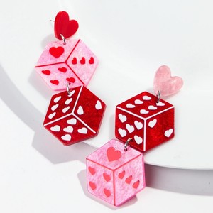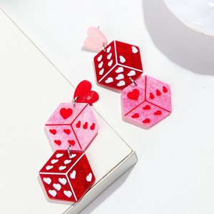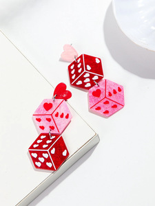 跨境欧美风蛋糕blingbling爱心骰子耳环亚克力拼接红色桃心镜耳环