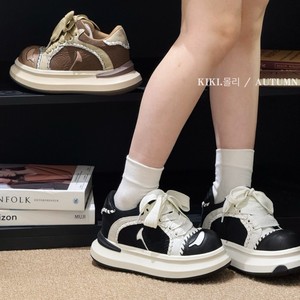 涂鸦拼色国潮休闲厚底运动小白鞋2025秋季新款百搭小众设计感板鞋