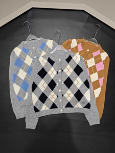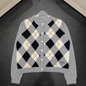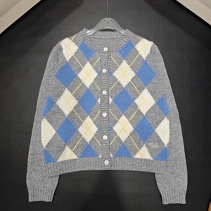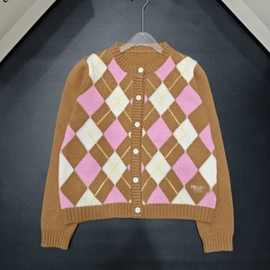南油高定25秋冬新款P家复古美拉蓝菱格提花针织衫开衫上衣外套女