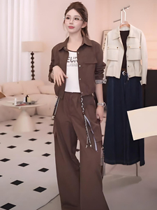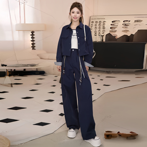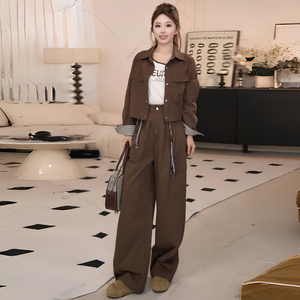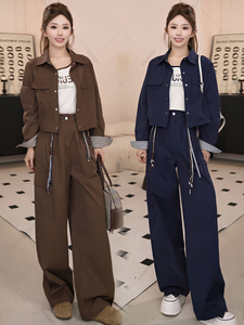 2025秋季新款韩系时尚休闲工装裤女短外套阔腿裤两件套