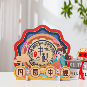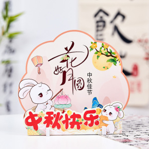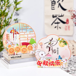 2025中秋节装饰桌面摆件创意立体商场场景布置柜台氛围收银道具猫