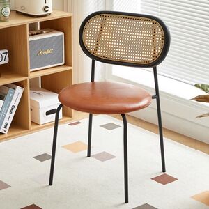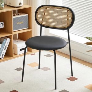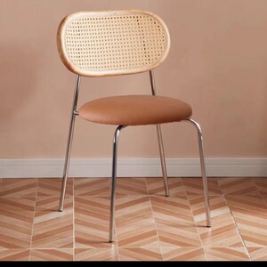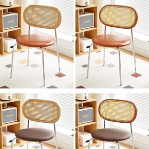 中古藤编椅子网红INS风实木靠背椅家用民宿小户型餐椅阳台椅