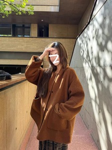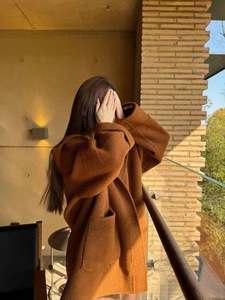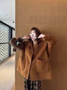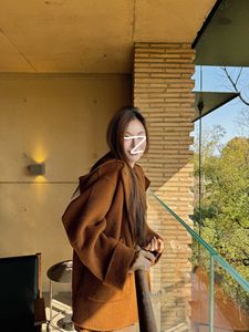 韩系ins秋冬季复古可爱减龄连帽小个子双面羊毛斗篷短款大衣外套