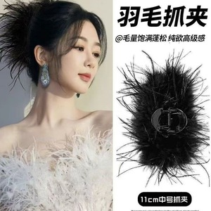 鲨鱼夹ins风羽毛抓夹毛毛发抓超仙头饰高级感发夹后脑勺鲨鱼夹