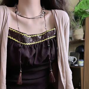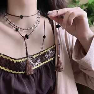 新中式国风水晶串珠流苏项链女高级感小众设计感串珠叠戴腰链颈链