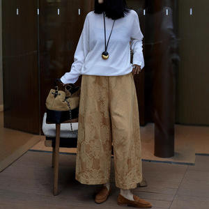 2025秋款复古真丝麻提花裤子版型超不挑人穿百搭款宽松显瘦休闲裤
