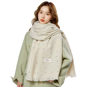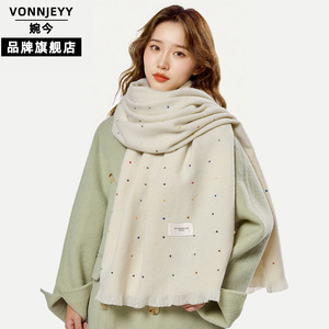 婉今正品彩色点点围巾女氛围感秋冬新款保暖外搭长款披肩梭织围脖