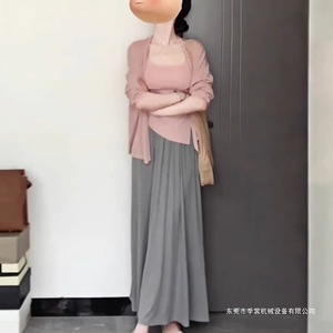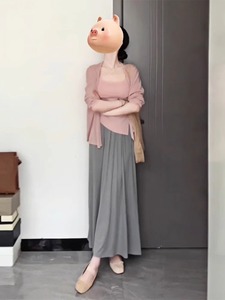 感穿搭秋装搭配一整套大码胖mm遮肉显瘦针织连衣裙子三件套装