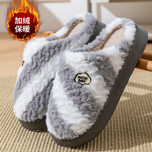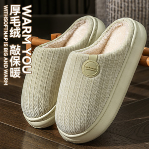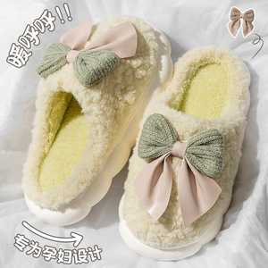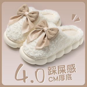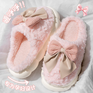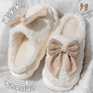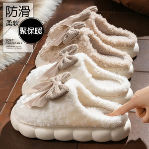 蝴蝶结毛毛绒棉拖鞋女士秋冬季2025新款室内家居用厚底踩屎感棉拖