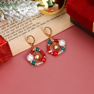 欧美跨境饰品圣诞节元素耳环女不对称个性创意卡通月亮拼色风耳饰
