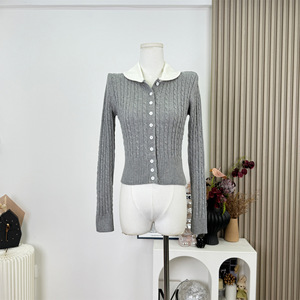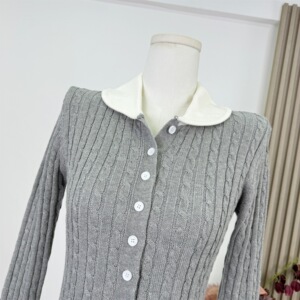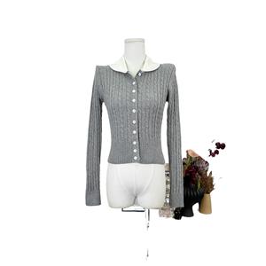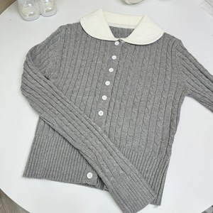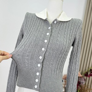 轻氧*秋灰白拼接针织绞花针织衫短上衣