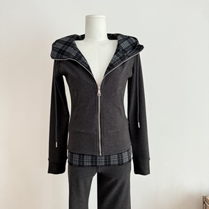 美式格纹连帽开衫卫衣拼接高腰宽松百搭卫裤阔腿裤