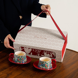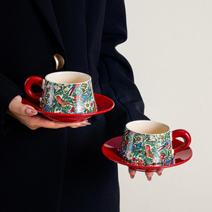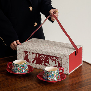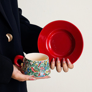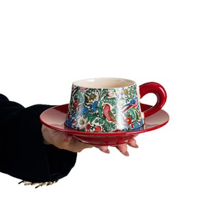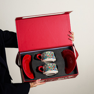 红色花鸟(轻奢礼盒套装)【2杯+2碟】