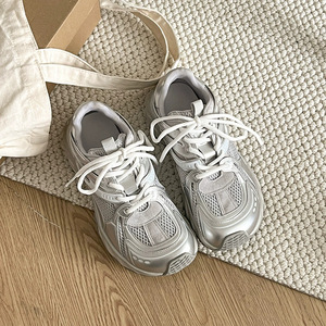 牛皮版小个子松糕厚底老爹鞋女2025秋季薄款网纱透气德训鞋休闲