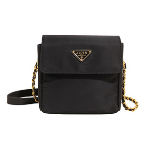 P家三角标高级黑百搭质感纯色尼龙手提包包盖式单肩斜挎包腋下包