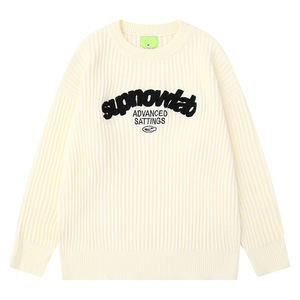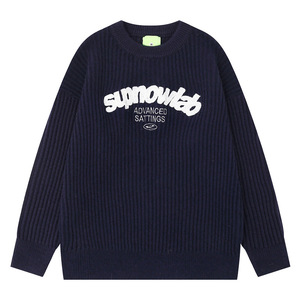 美式复古ina慵懒风圆领毛衣男女秋冬季宽松外穿字母刺绣针织外套
