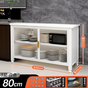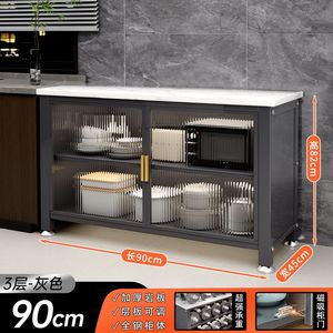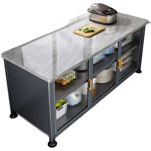 多功能微波炉烤箱切菜储物柜对开门厨房橱柜落地多层岩板收纳柜