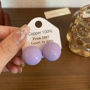 小清新芋泥紫糖果圆球耳钉奶油甜妹风百搭耳环简约耳饰小众高级感