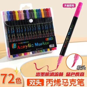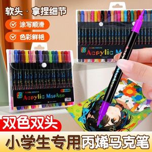 直液式双头丙烯马克笔小学生彩绘手账涂鸦笔可叠色儿童套装彩笔
