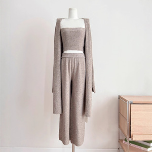 秋日慵懒风仿牦牛绒针织套装女抹胸裤子两件套女