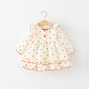 童装女童连衣裙春秋季婴儿童女宝宝长袖花边草莓单层棉布公主裙子