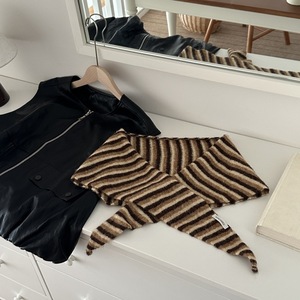 韩版ins简约条纹针织三角披肩女秋冬季时尚百搭保暖护颈外搭围巾