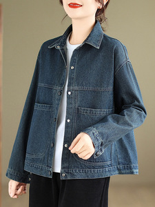 哥家商场同款女装2025秋季复古廓形环保水洗牛仔衬衫外套女长袖