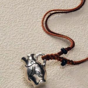 复古风雕刻酒壶编织筐项链轻奢高级感编绳长项链小众设计款吊坠女