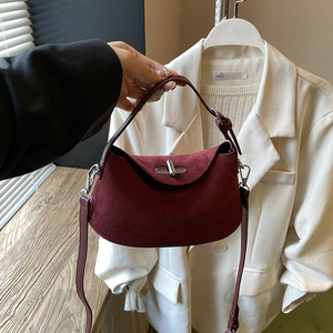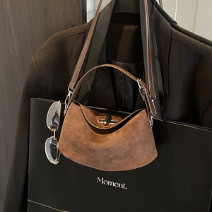 复古小众质感手提包小拎包女2025新款麂皮绒水桶包简约斜挎手机包