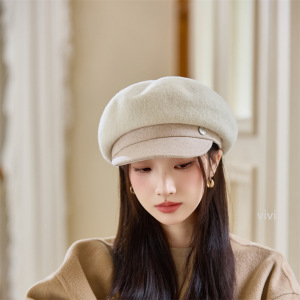 帽子秋冬时尚保暖毛呢八角帽冬季显脸小百搭报童贝雷帽子大头围