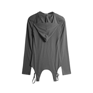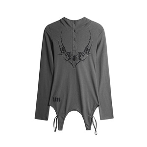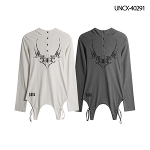 2025秋季新款美式亚文化暗黑风辣妹铆钉连帽长袖T恤女V领宽松上衣