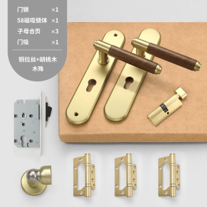 【木殊】铜拉丝-58静音锁+3合页+1门吸
