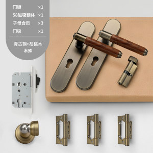 【木殊】青古铜-58静音锁+3合页+1门吸
