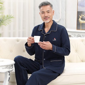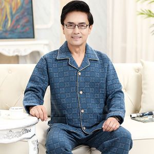 中老年睡衣男士春秋款夹层加厚纯棉长袖爸爸家居服套装可外穿