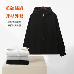 420g重磅插肩帽衫秋冬款加厚开衫卫衣男女同款纯色拉链带帽上衣
