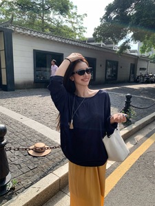 气质慵懒时尚套装裙女夏季新款薄款露背长袖T恤上衣半身裙两件套